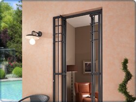 E' disponibile in numerose varianti di disegni e colori, anche su proposta del cliente. Si può installare praticamente in ogni situazione, per esempio su muratura o mattoni a vista, in presenza di marmi o in un monoblocco in legno. Inoltre occupa uno spazio particolarmente ristretto: bastano pochi centimetri! Il cancello si adatta bene a numerosi tipi di esigenze: si può scegliere di porre una grata fissa, adatta per quei vani che non richiedono un passaggio o comunque mai utilizzati. oppure si può installare un cancelletto apribile, ad un numero di ante a scelta a seconda delle esigenze.